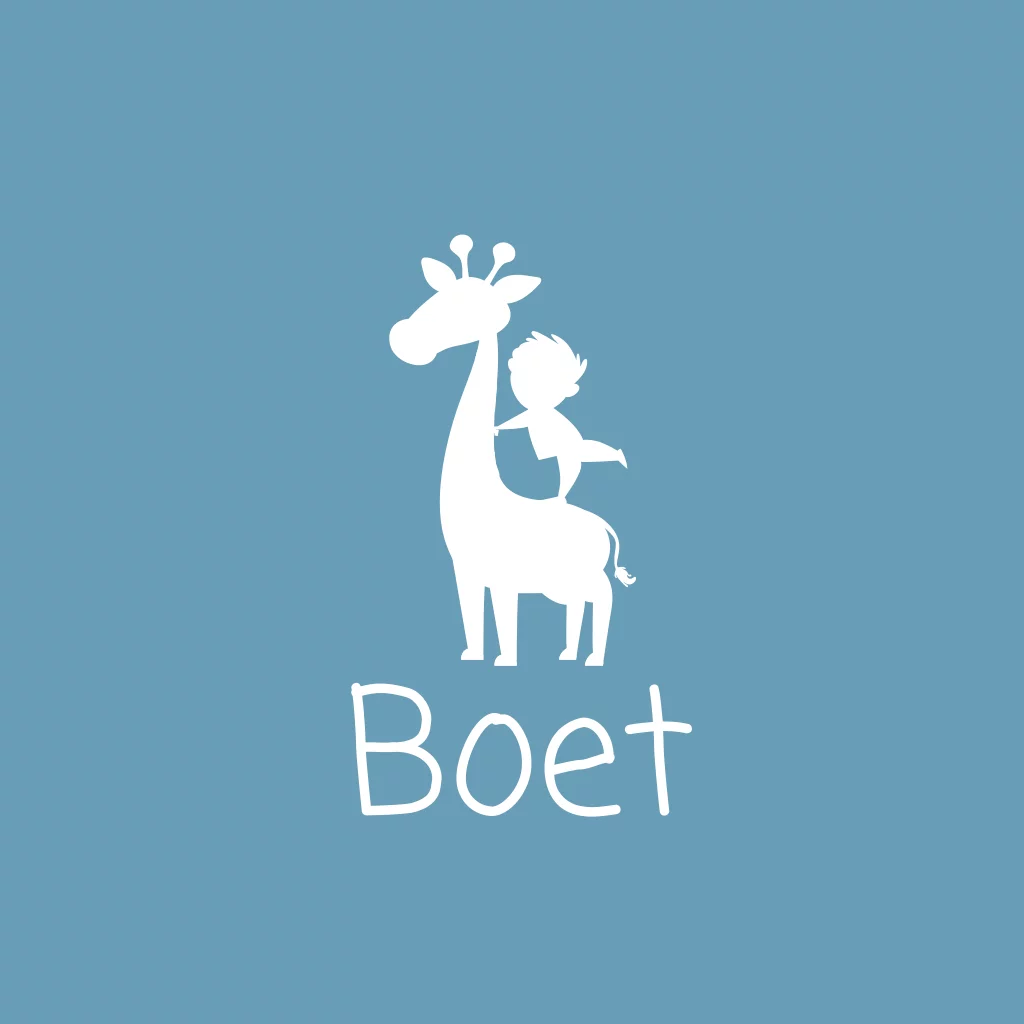 Lief, hip en eenvoudig geboortekaartje voor een jongetje. Met een silhouet van een kindje op de rug van een giraf. De achtergrondkleur is naar eigen smaak aan te passen. (4033)
