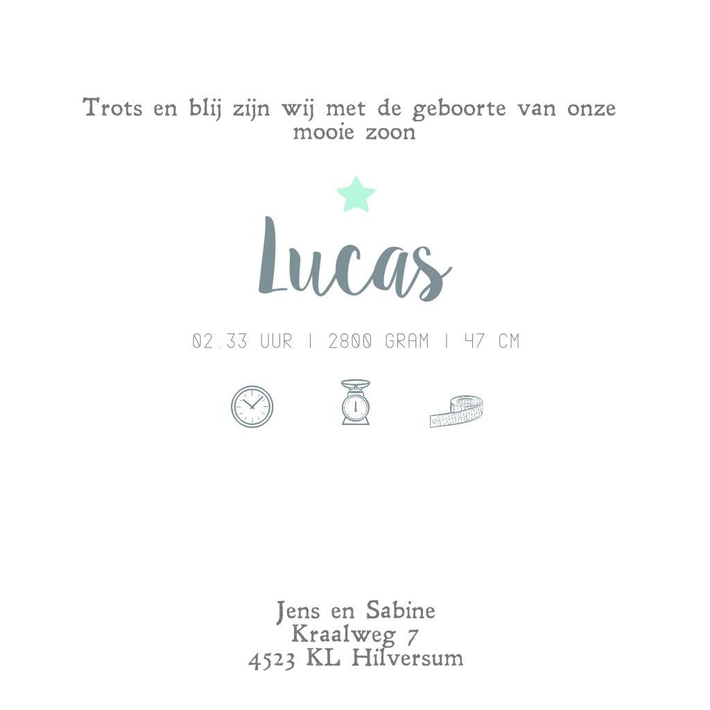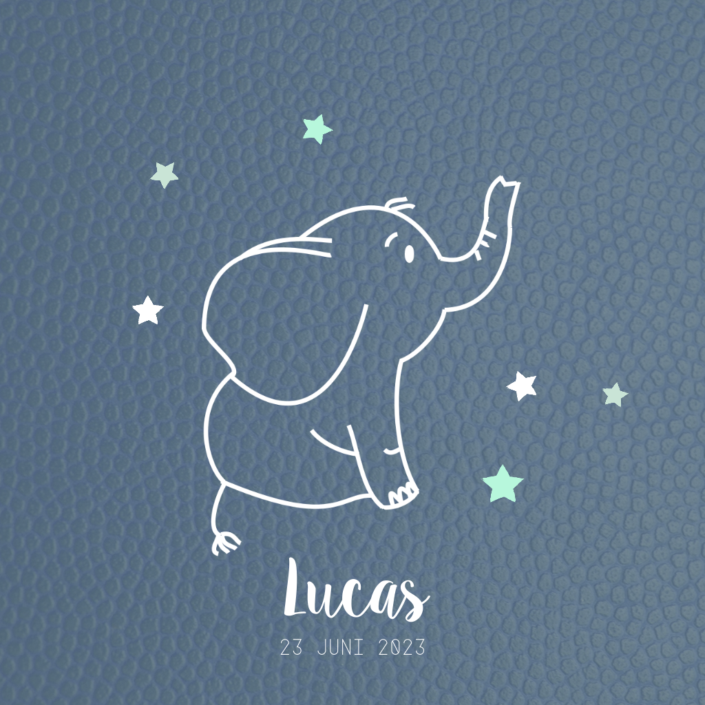 Lief geboortekaartje voor een jongen met olifantje en hartjes