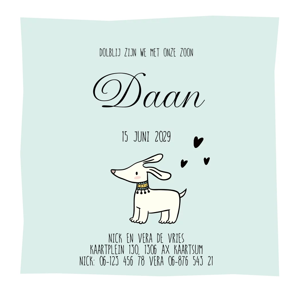 Lief zomers geboortekaartje jongen eenhoorn en zon
