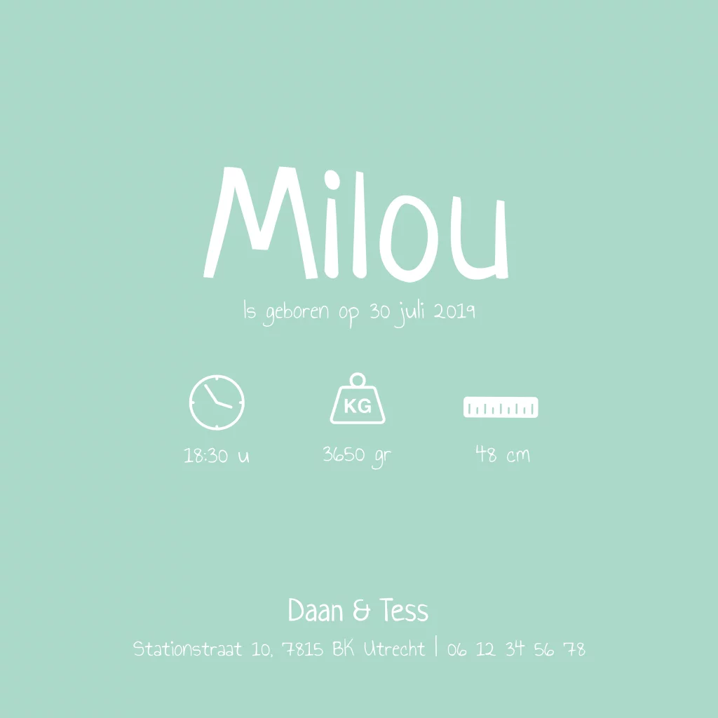 Mint geboortekaartje met tijger