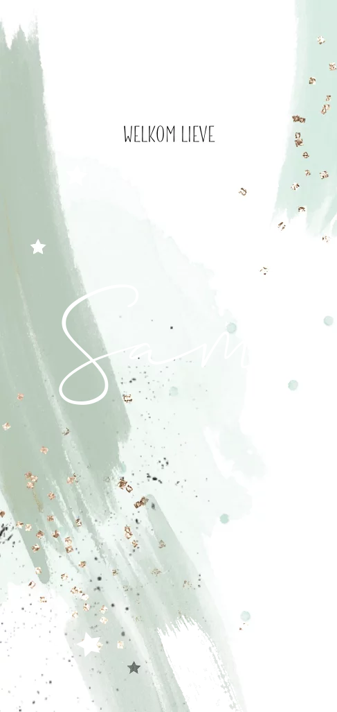 Geboortekaartje hip voor een jongen met mint groen aquarel en foliedruk.