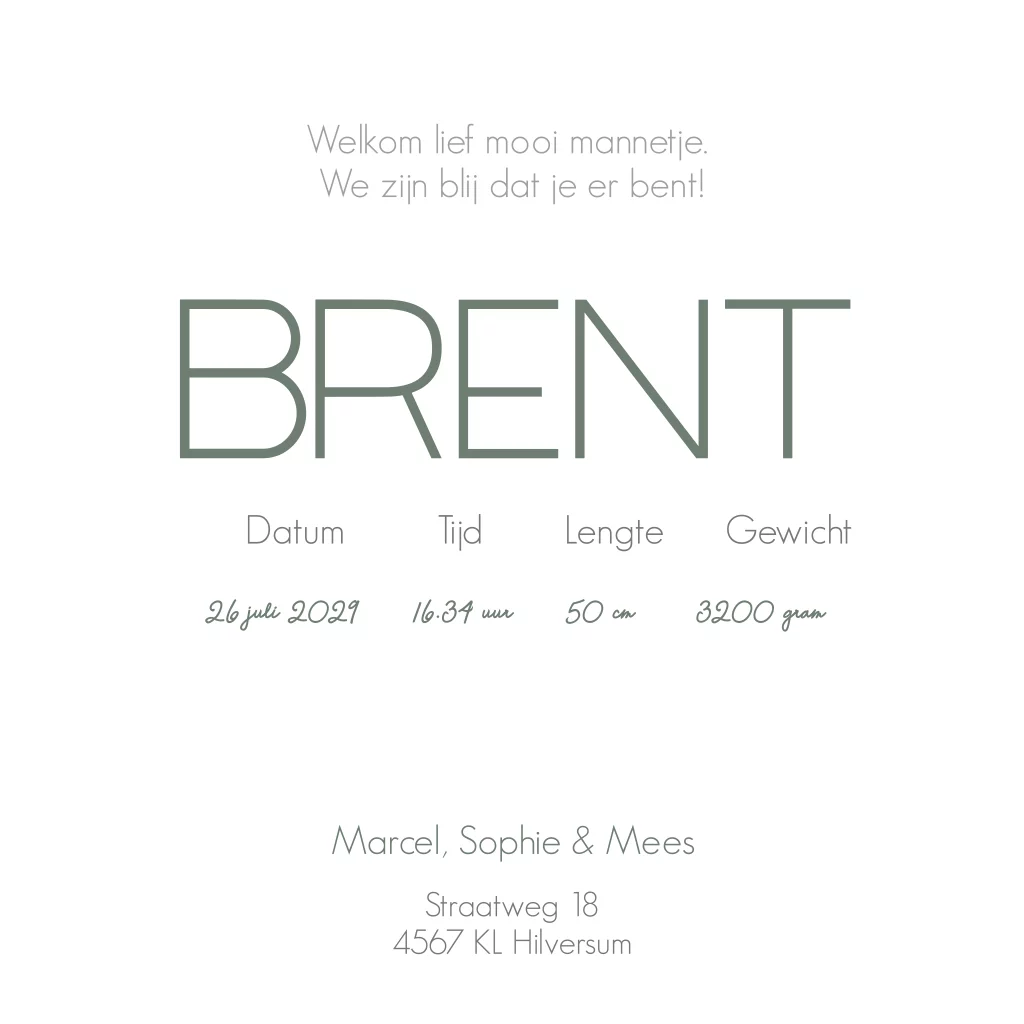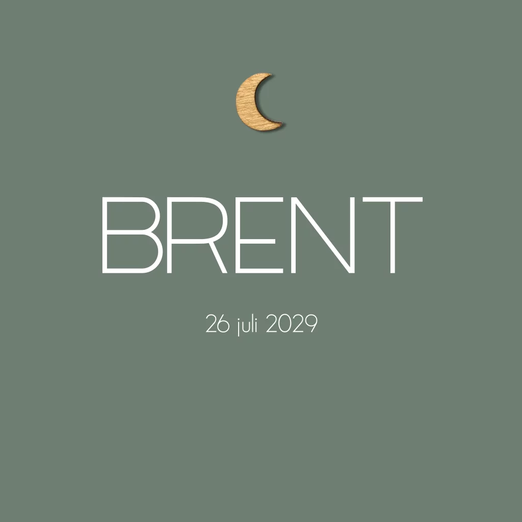 Hip en modern geboortekaartje met echt houten maantje voor een jongen. (3564) LET OP! Bij de proefdruk en eindbestelling wordt GEEN voorbeeld vormpje geleverd. Het houten vormpje op dit kaartje wordt niet mee gedrukt, deze is ter voorbeeld. Op die plek kun je straks zelf het Γ©chte houten vormpje plakken die je in het bestelproces bij dient te bestellen.