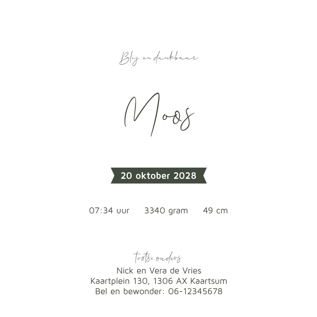 Hip foliedruk babykaartje voor een jongen met groene achtergrond.