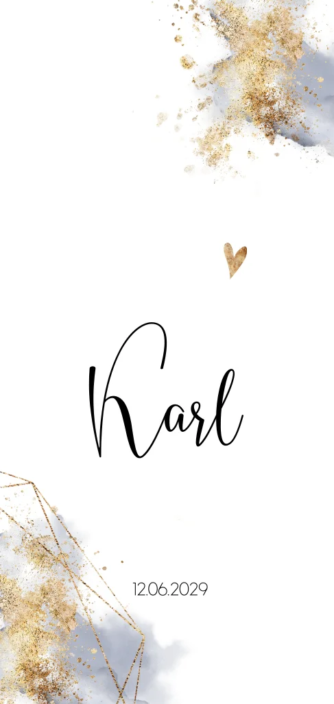 Geboorte kaartje modern met blauwe waterverf en geometrische vormen.