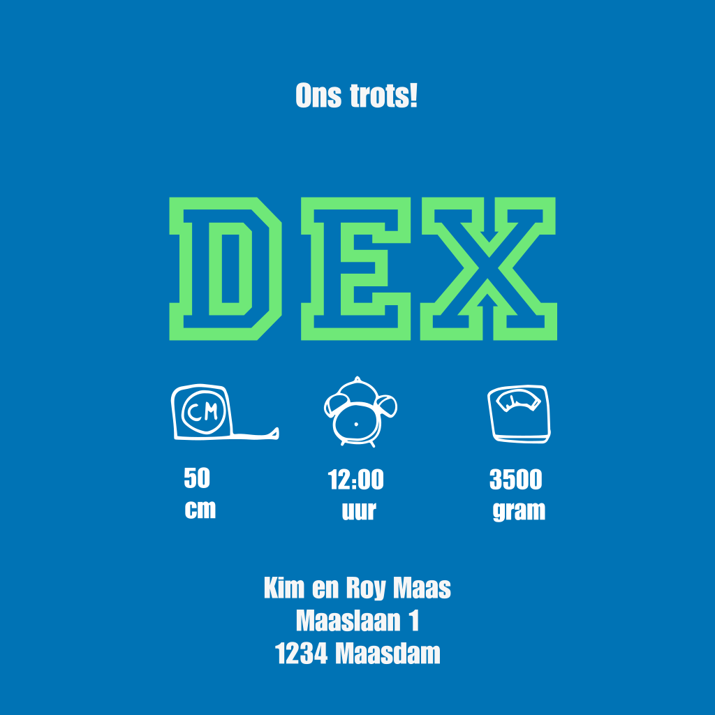 Wil je een stoere geboortekaart voor je zoontje? Dat is dit misschien wat voor jou. Met stoer grijs en helder blauw is dit kaartje sprekend.