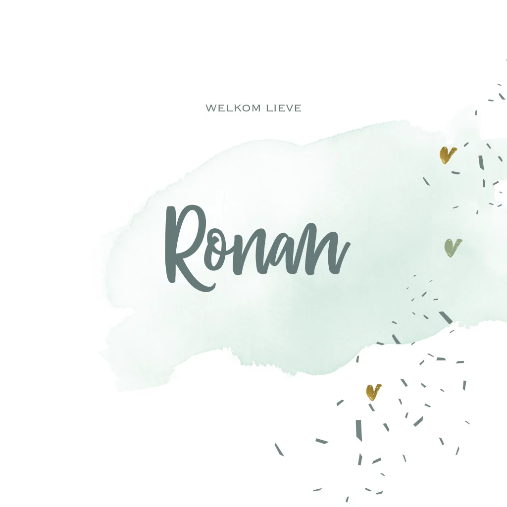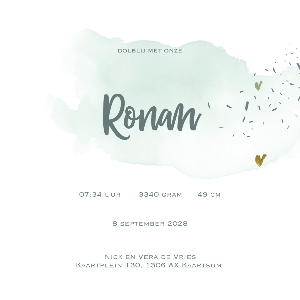 Kaartje geboorte zoon met watercolor groen.