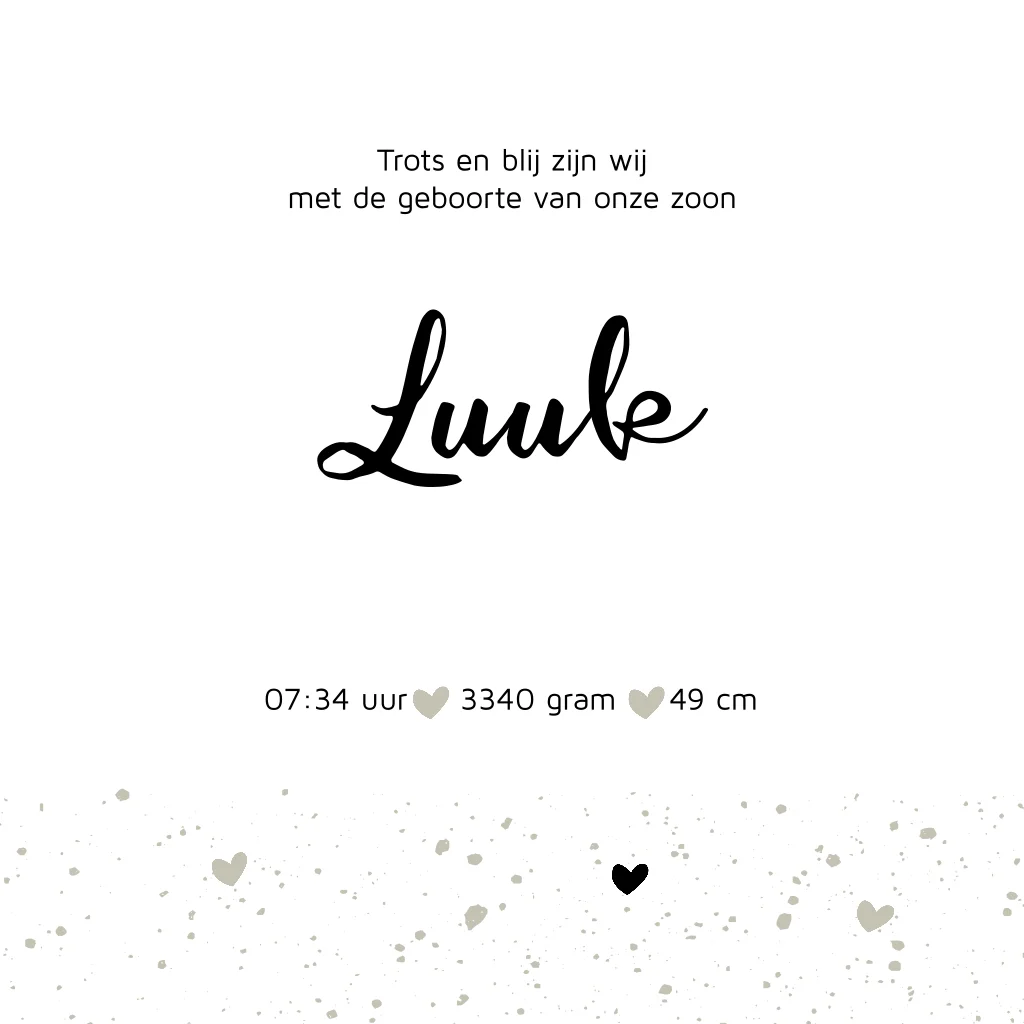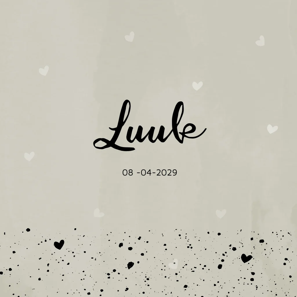 Geboortekaartje modern voor een jongen met beige kleur en hartjes.