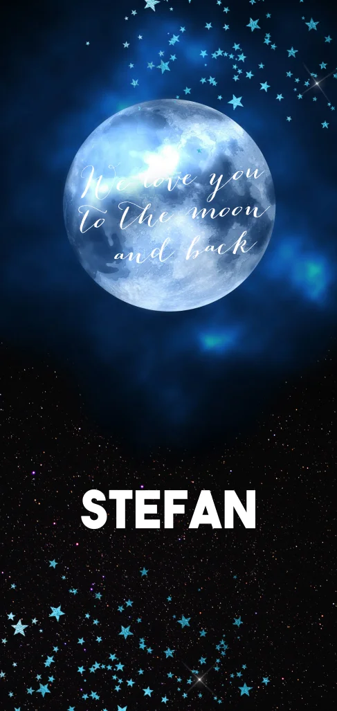 Stoer jongens geboortekaartje met maan en sterretjes in neon look.