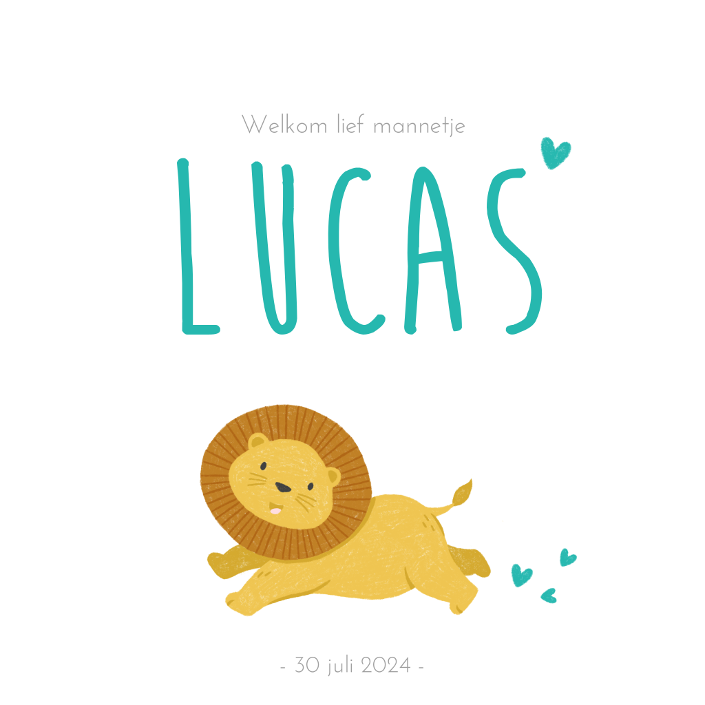 Stoer blauw geboortekaartje jongen met leeuwtje