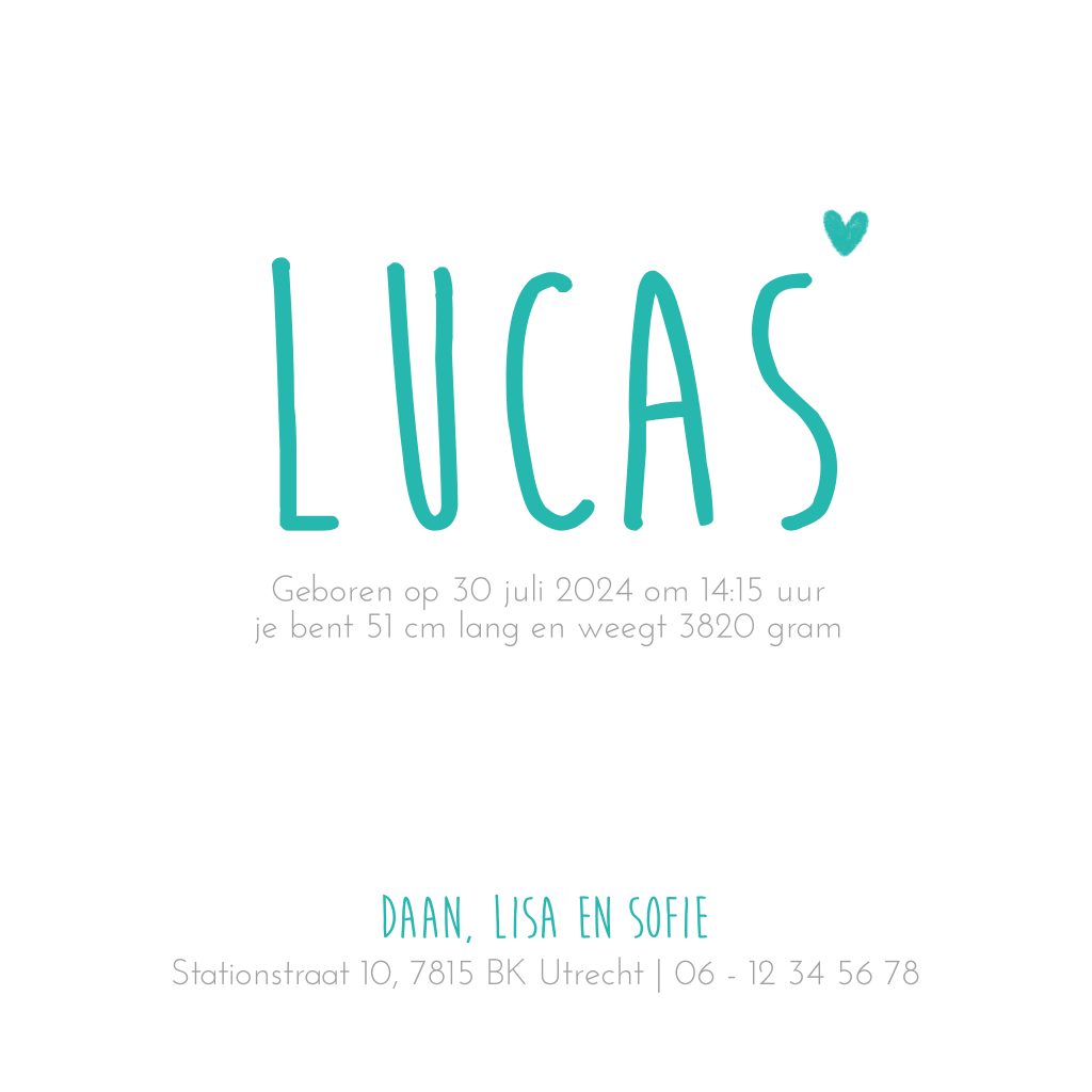 Stoer en lief geboortekaartje in blauw en gele kleuren voor een jongen. Met een getekend leeuwtje en hartjes. Alle elementen op de kaart zijn los en naar wens aan te passen. (3560)