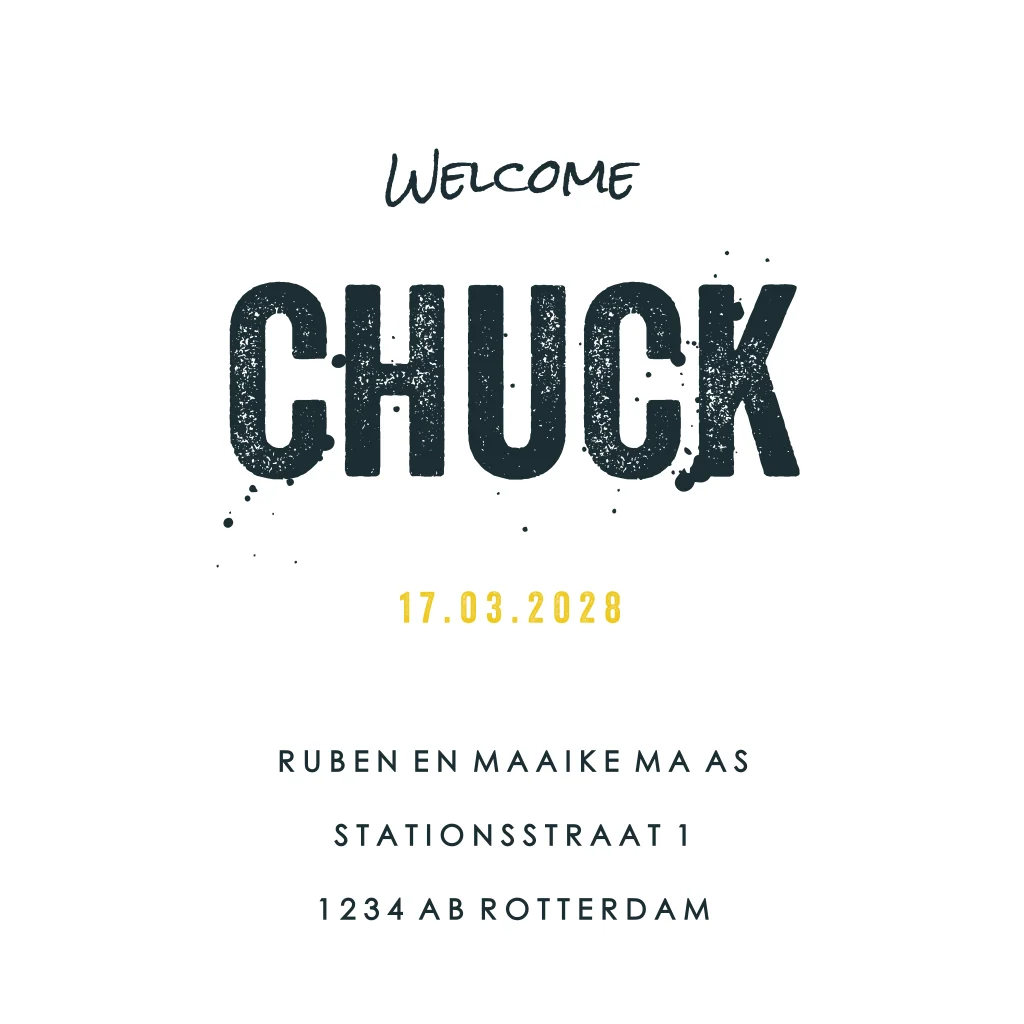 Stoer geboortekaartje jongen met ruit patroon