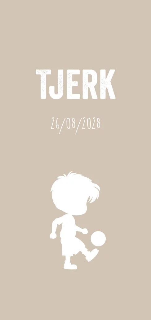 Stoer silhouet geboortekaartje met voetballend jongetje