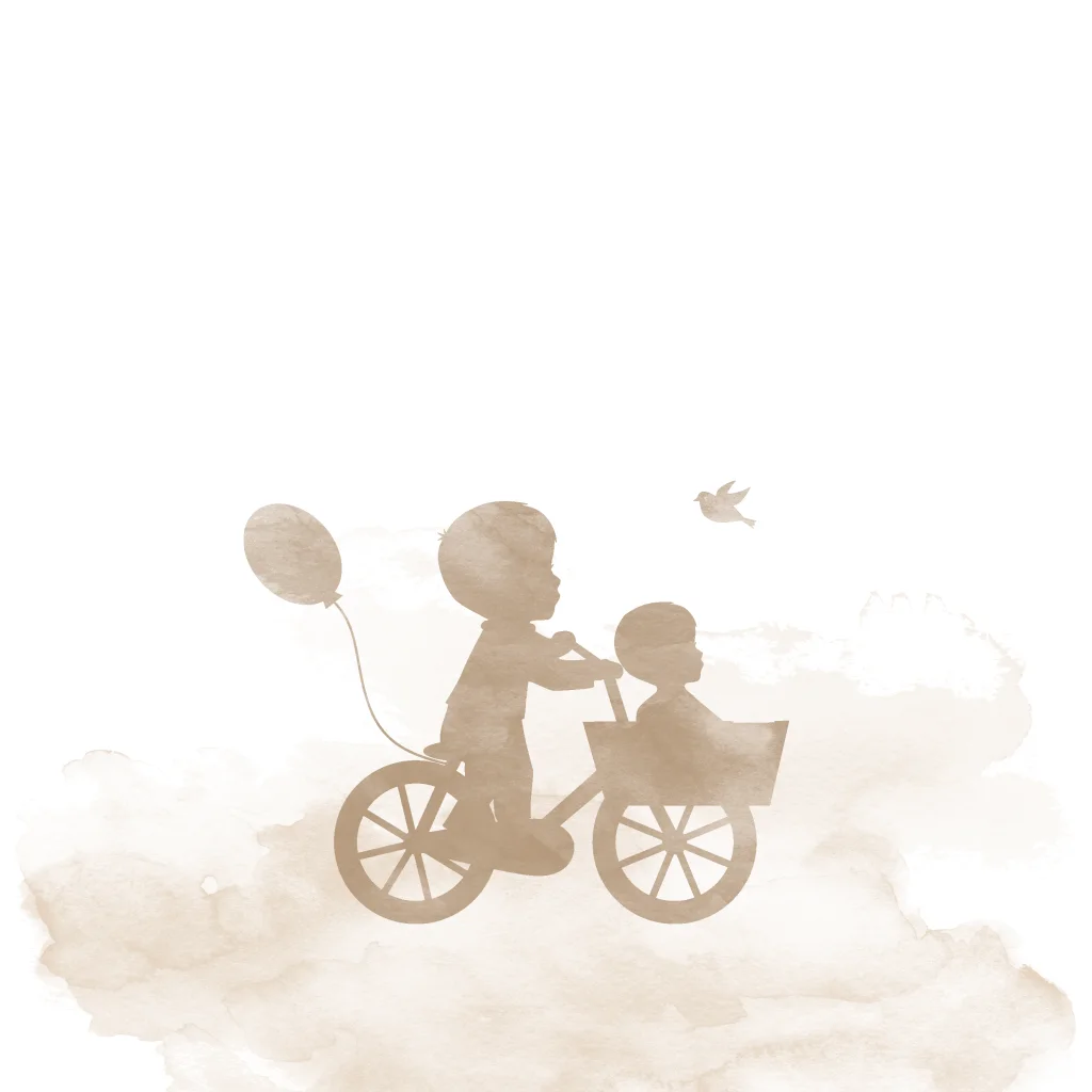 Tof geboortekaartje waterverf silhouet broertjes fiets en goudfolie