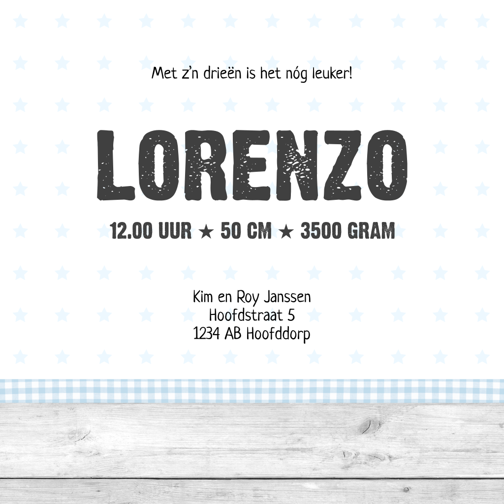 Uniek foto geboortekaartje jongen met hout en sterren