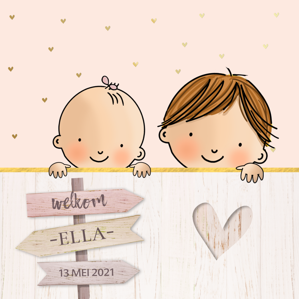 Geboortekaartje voor een 2e kindje baby meisje met broertje sloophout. Ben je opzoek naar een andere gezinssamenstelling neem dan even contact op met onze klantenservice. We helpen je graag! (164)