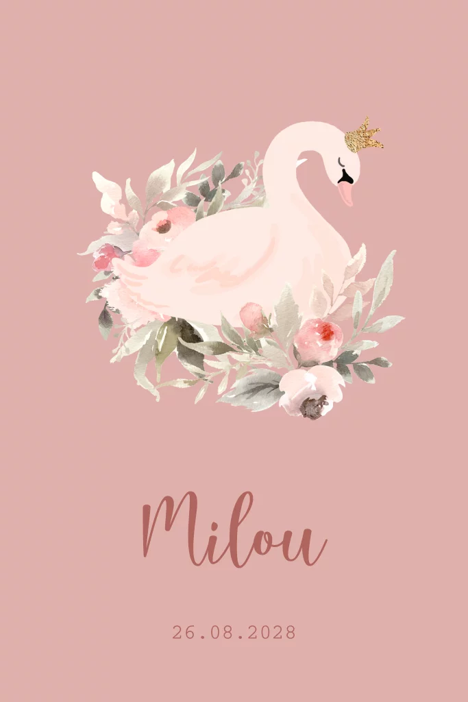 Baby kaartje voor een meisje met zwaantje en kroon.