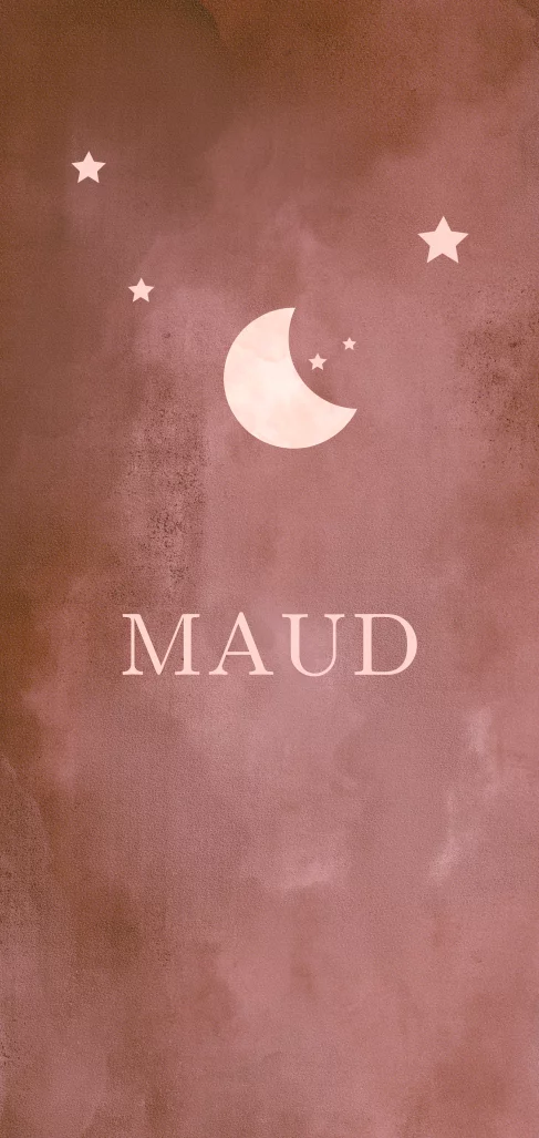 Geboorte kaartje meisje met maan en sterren.