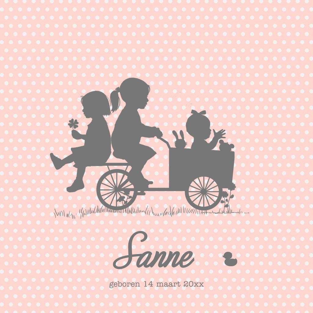 Bakfiets geboortekaartje 3 kindje zusjes met baby zusje