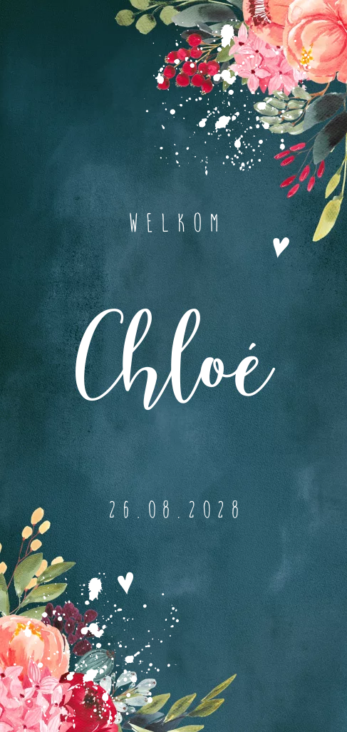 Bijzonder geboortekaartje meisje met bloemen en foliedruk