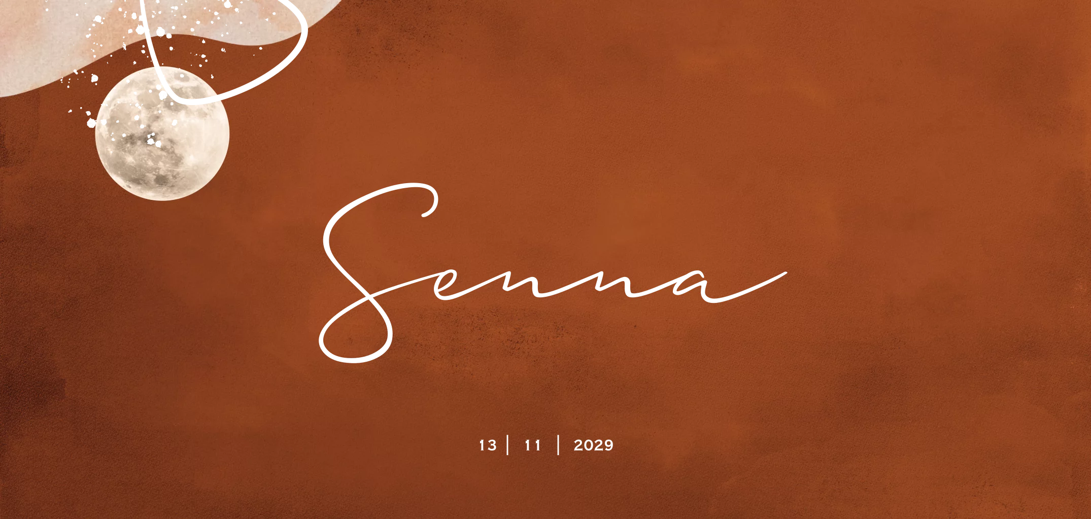 Hip en bijzonder babykaartje meisje. Cognac kleur, foliedruk en maan.
