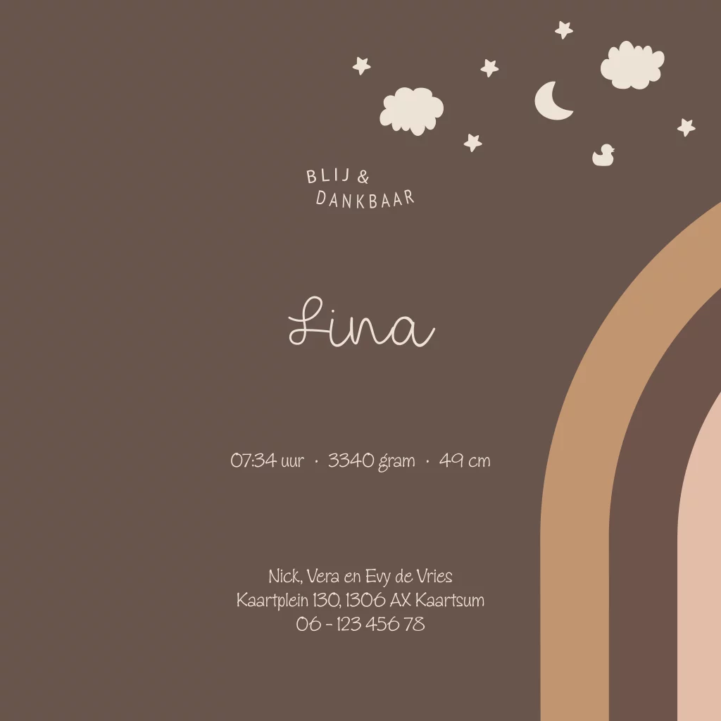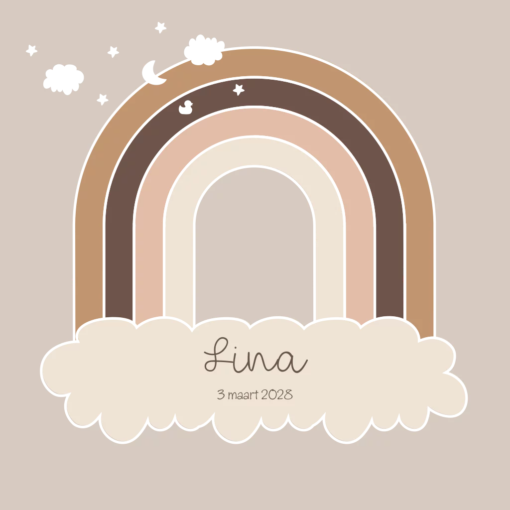Geboortekaartje bijzonder voor een meisje met regenboog in nude kleur en foliedruk.