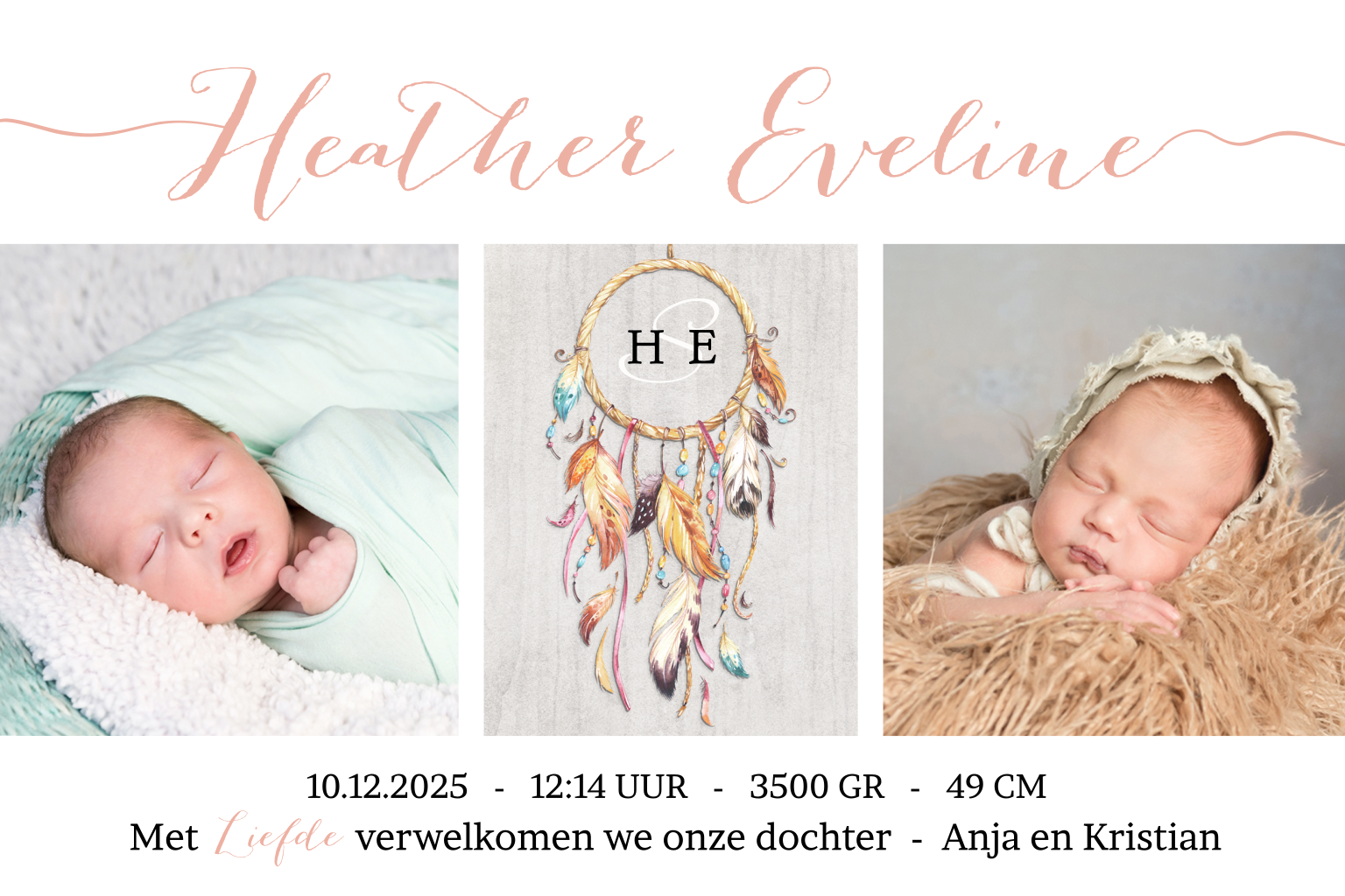 Bohemian geboortekaart meisje met eigen foto's. (3118)