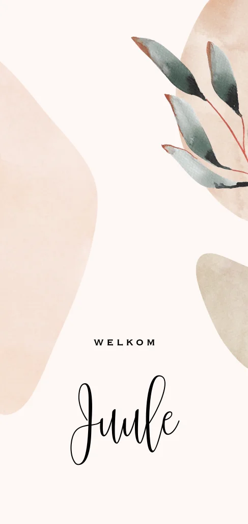 Geboorte kaartje botanisch voor een meisje met takjes en bladeren.