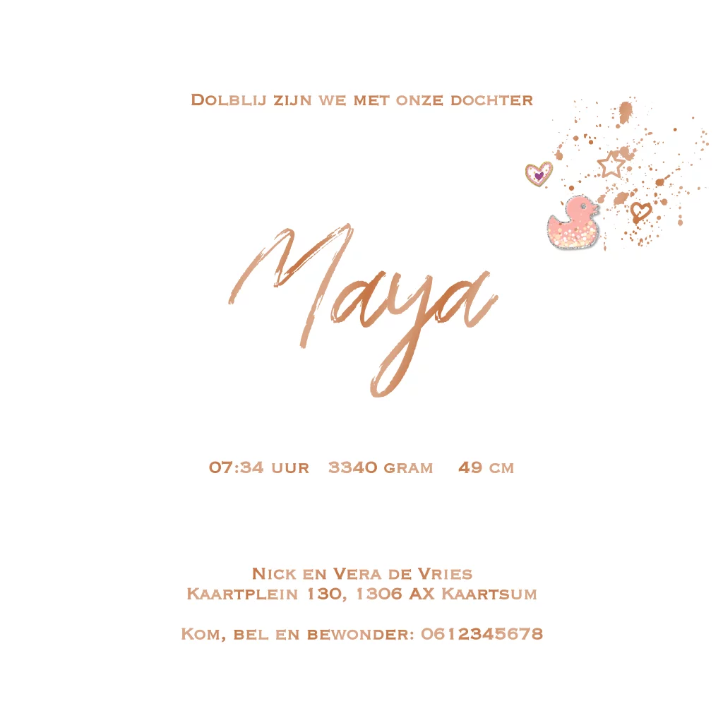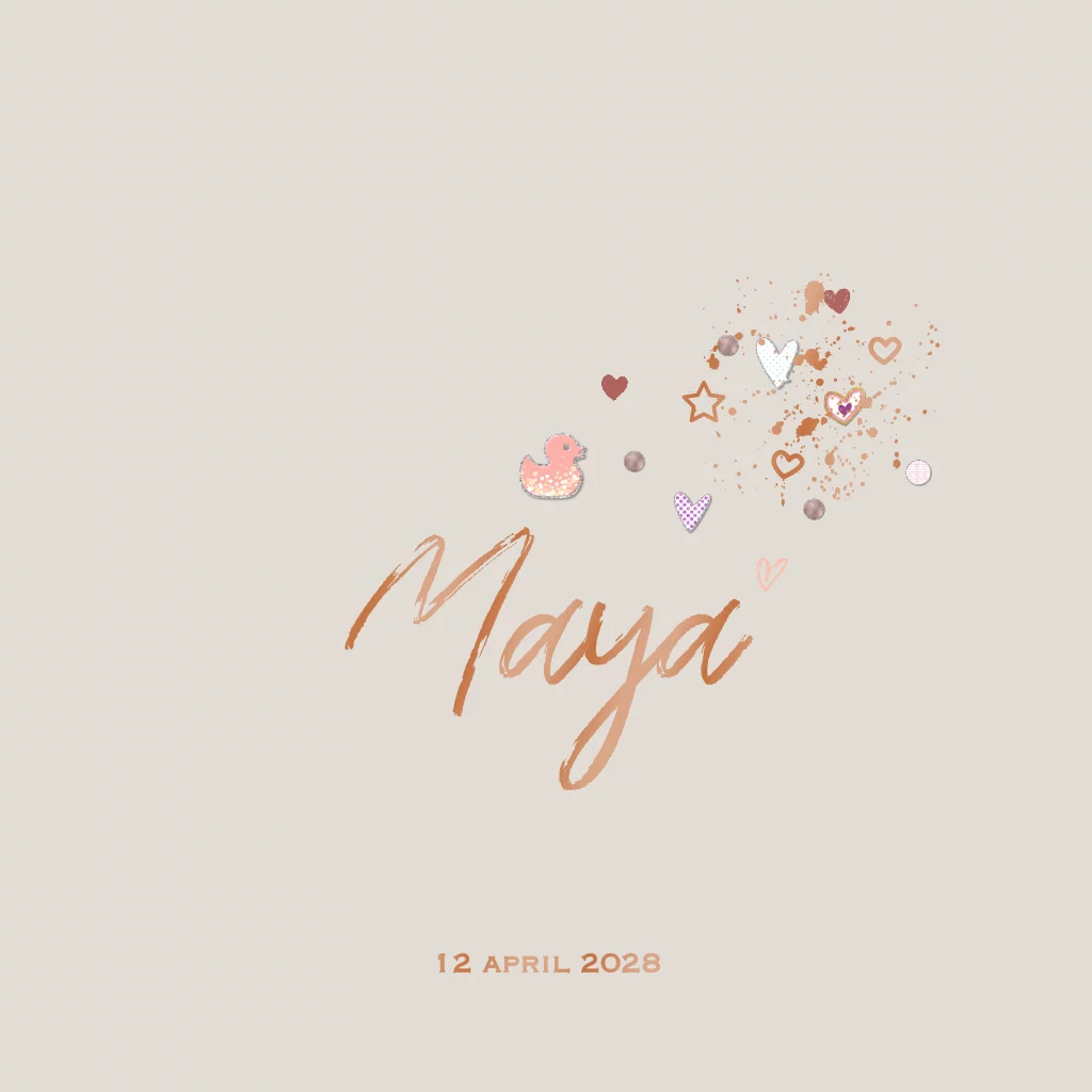 Foliedruk geboortekaartje meisje met eendje en sterren