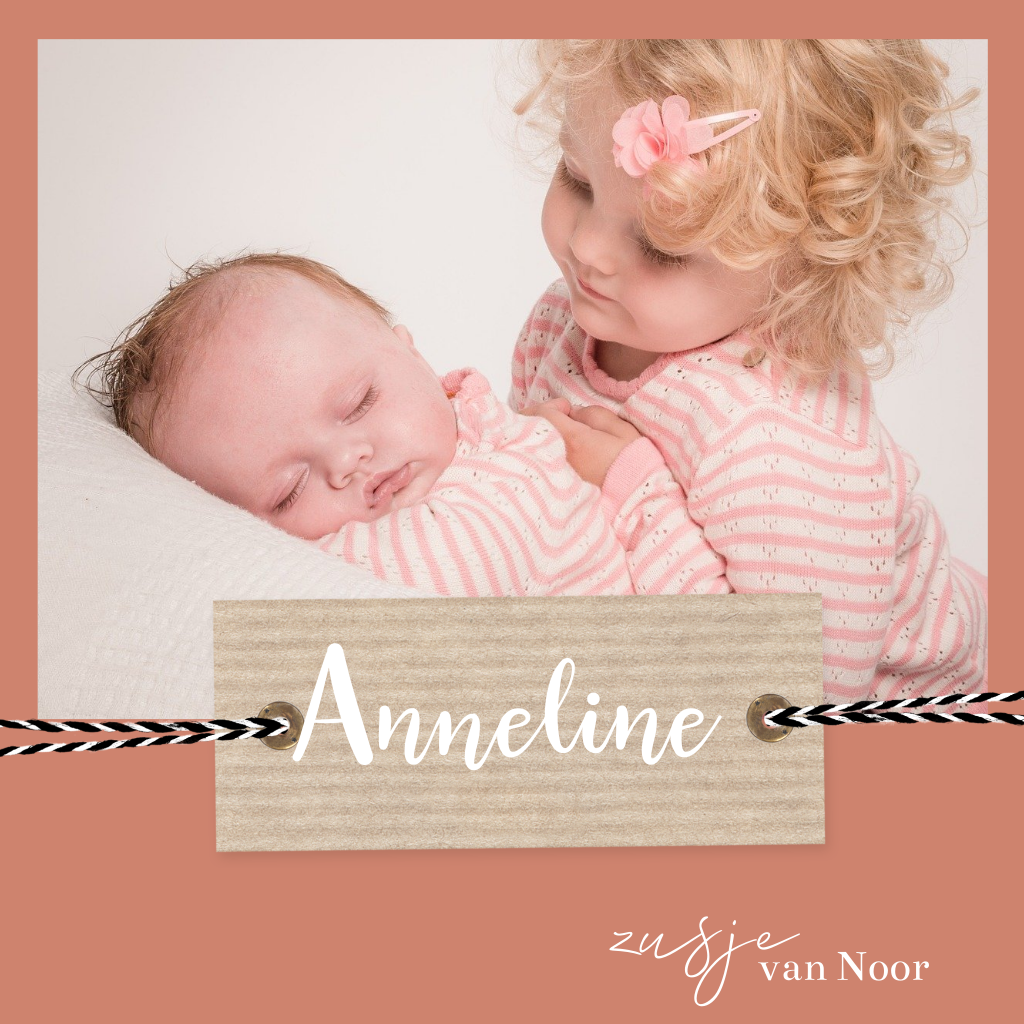 Foto geboortekaartje meisjes zusje met grote zus. Warme kleur terra, kleuren zijn naar wens aan te passen. (3519)