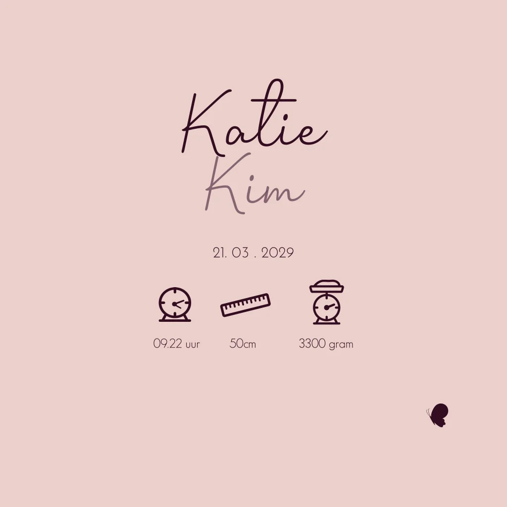 Lief lente geboortekaartje met een silhouet van een meisje en een franse bulldog. De grootte van de hond en de kleuren van het kaartje zijn naar eigen wens aan te passen.