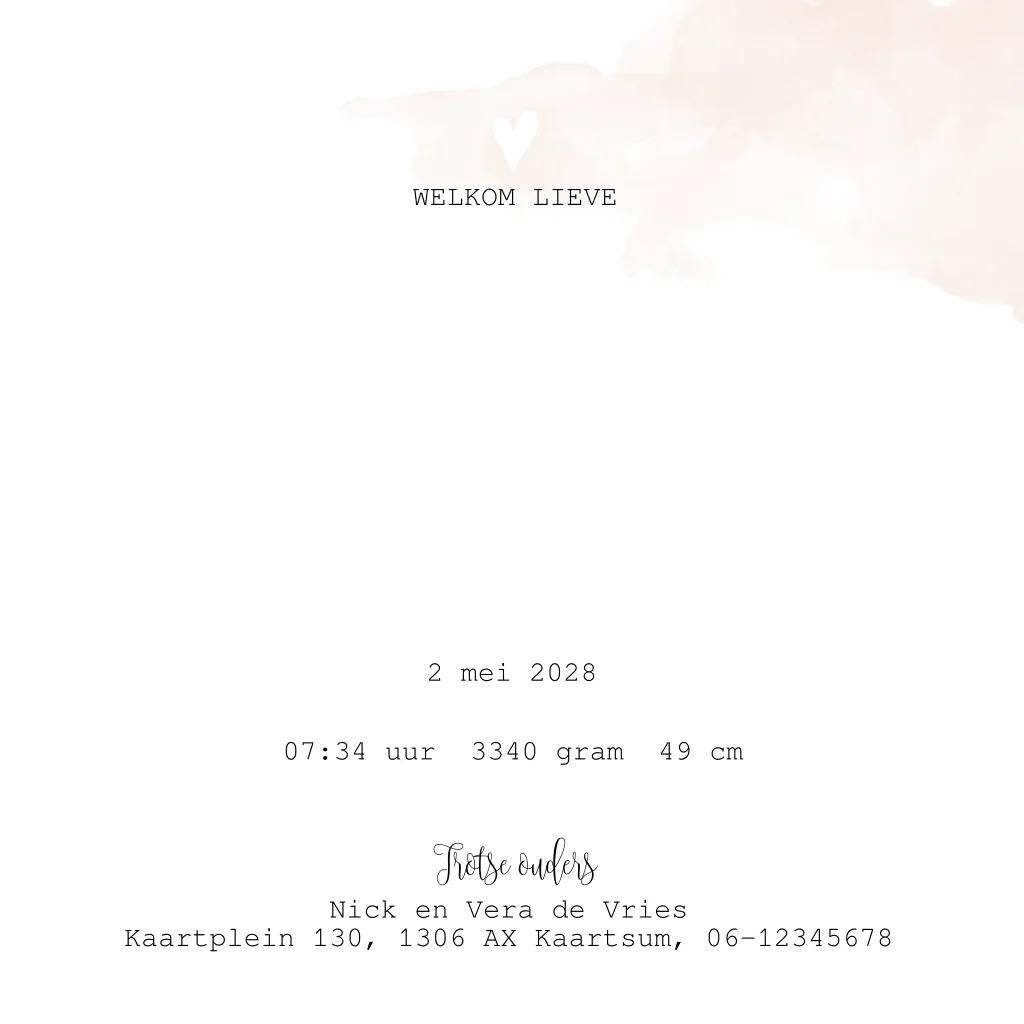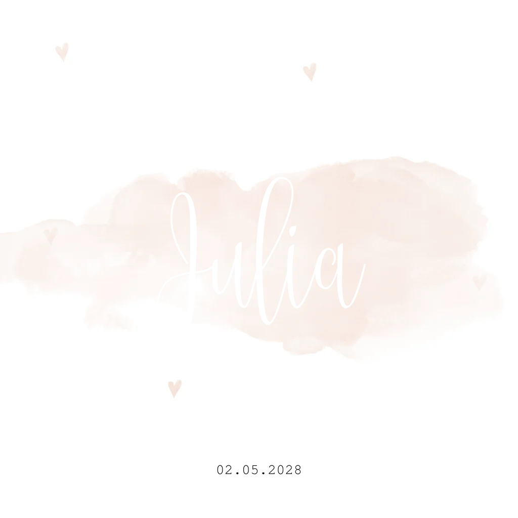 Geboortekaartje meisje roze aquarel en goud folie hartjes.