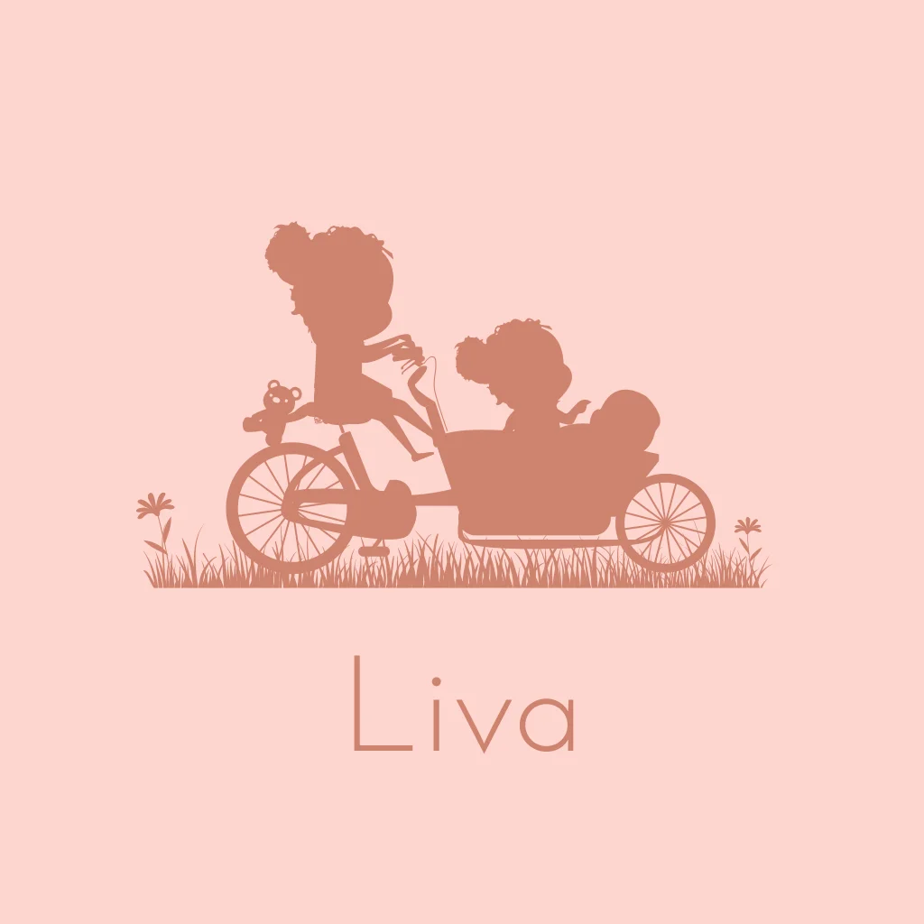 Geboortekaart met bakfiets voor grote zus en zusje 3e kindje