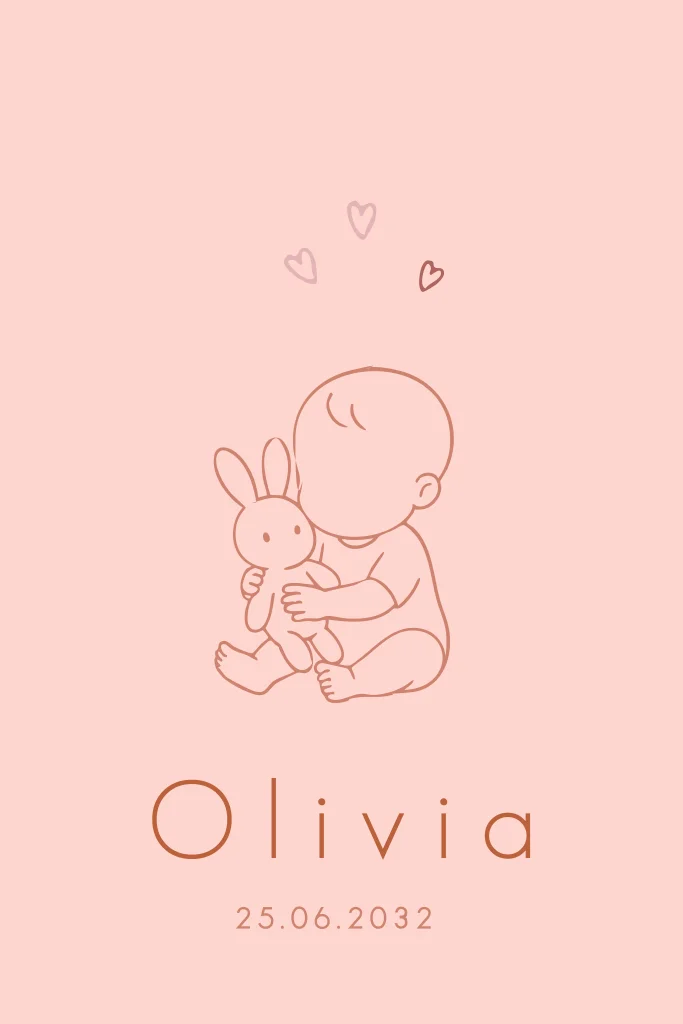 Geboortekaartje baby lijntekening silhouet knuffel konijn