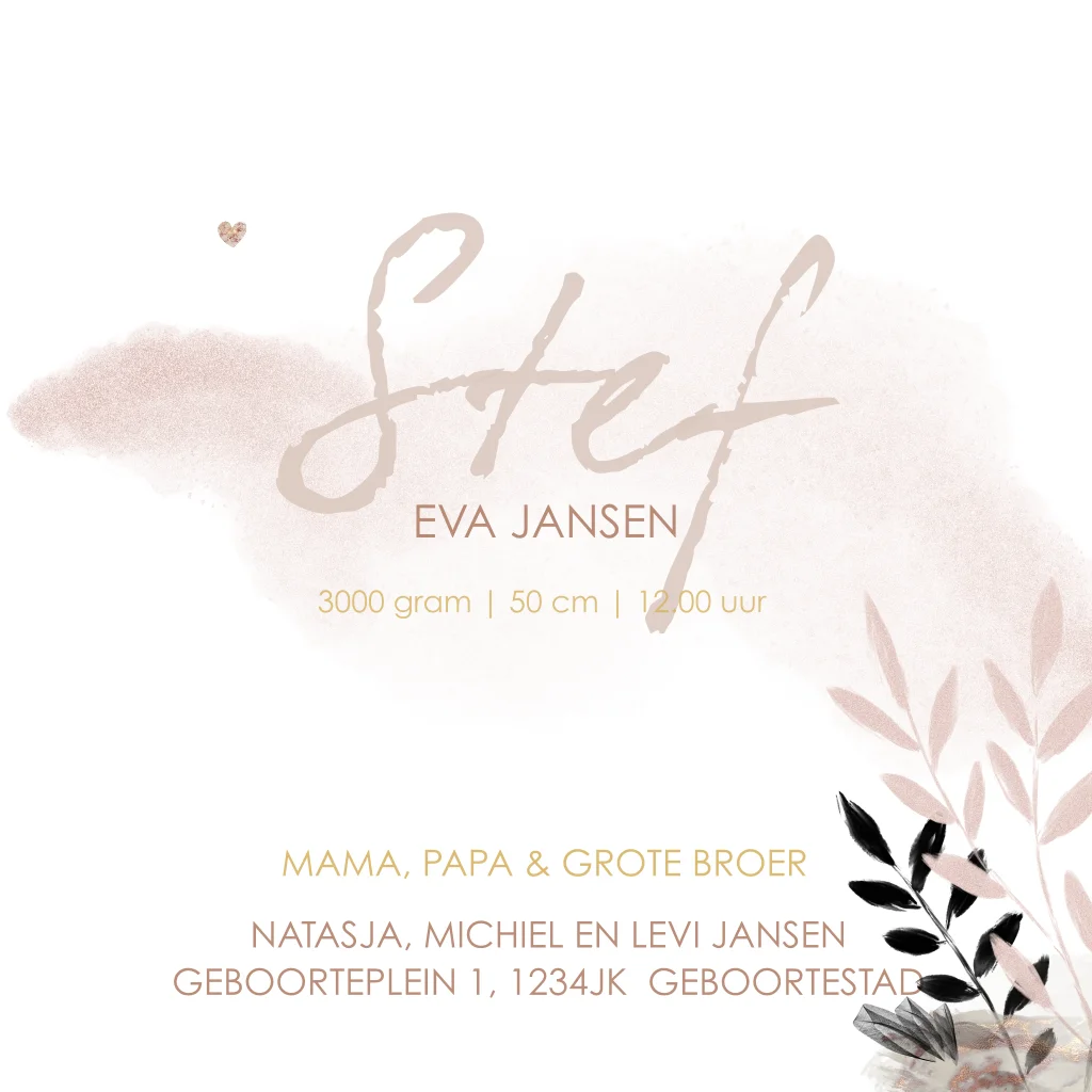 Geboortekaartje baby meisje trendy takjes. (3343)