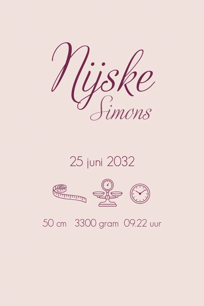 Een schattig geboortekaartje met illustratie in roze. Personaliseer eenvoudig in onze editor.