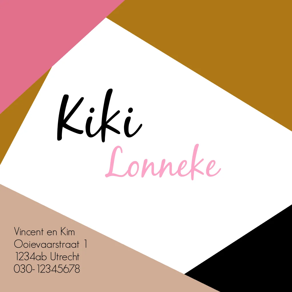 Een strak, stoer en mooi geboortekaartje in stoere kleuren met geometrische vlakken. (3317)