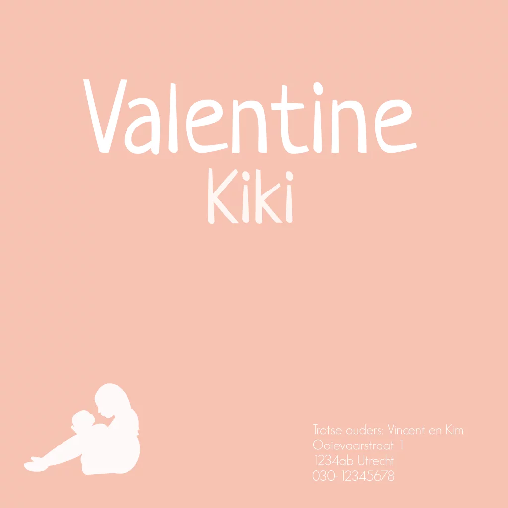 Lief geboortekaartje tweede kindje met een silhouet van een grote broer met een babyzusje op schoot. (3581)