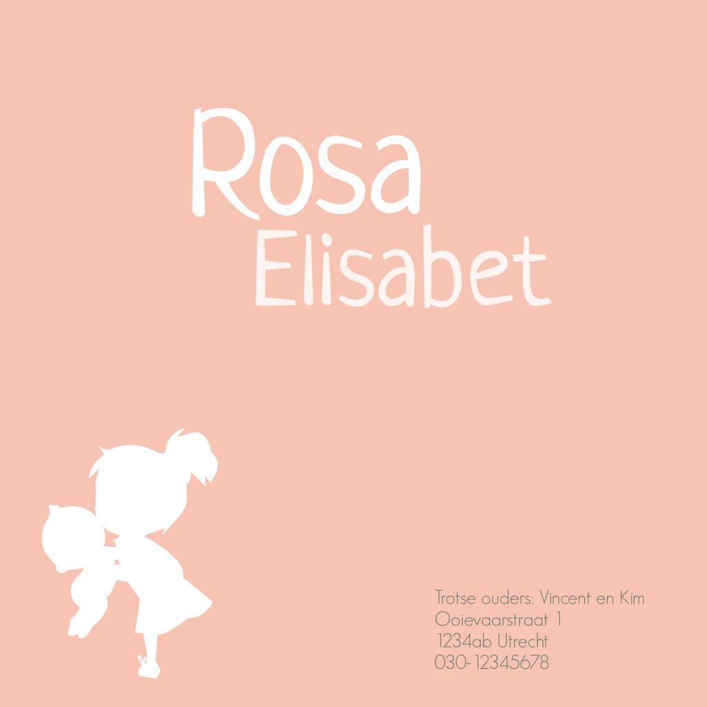 Lief geboortekaartje met een silhouet van een grote zus die een kusje aan haar kleine zusje geeft. (4461)
