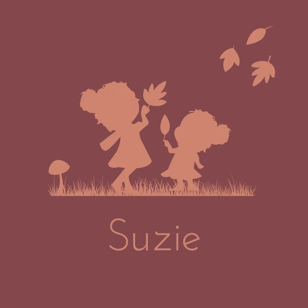 Geboortekaartje herfst silhouet meisjes zusjes zus zusje blaadjes