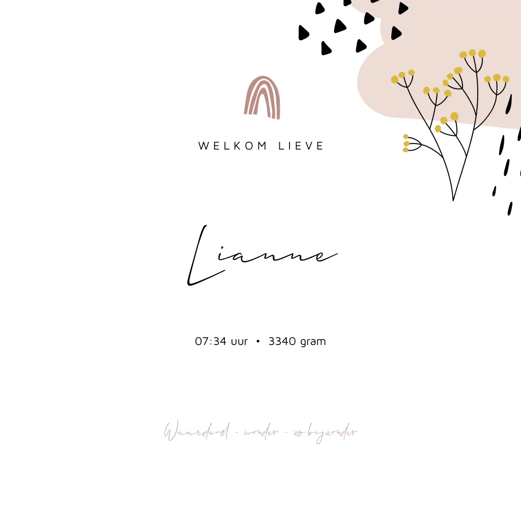Hip geboorte kaartje voor een meisje met grafische elementen. Aan de binnenzijde is er ruimte voor een eigen foto.