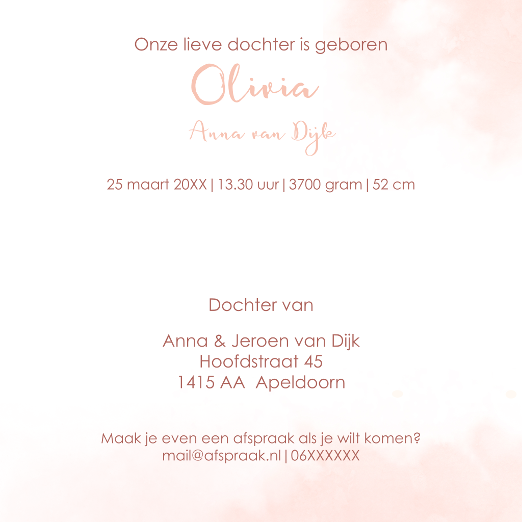Lief geboortekaartje voor een meisje met knuffel konijn