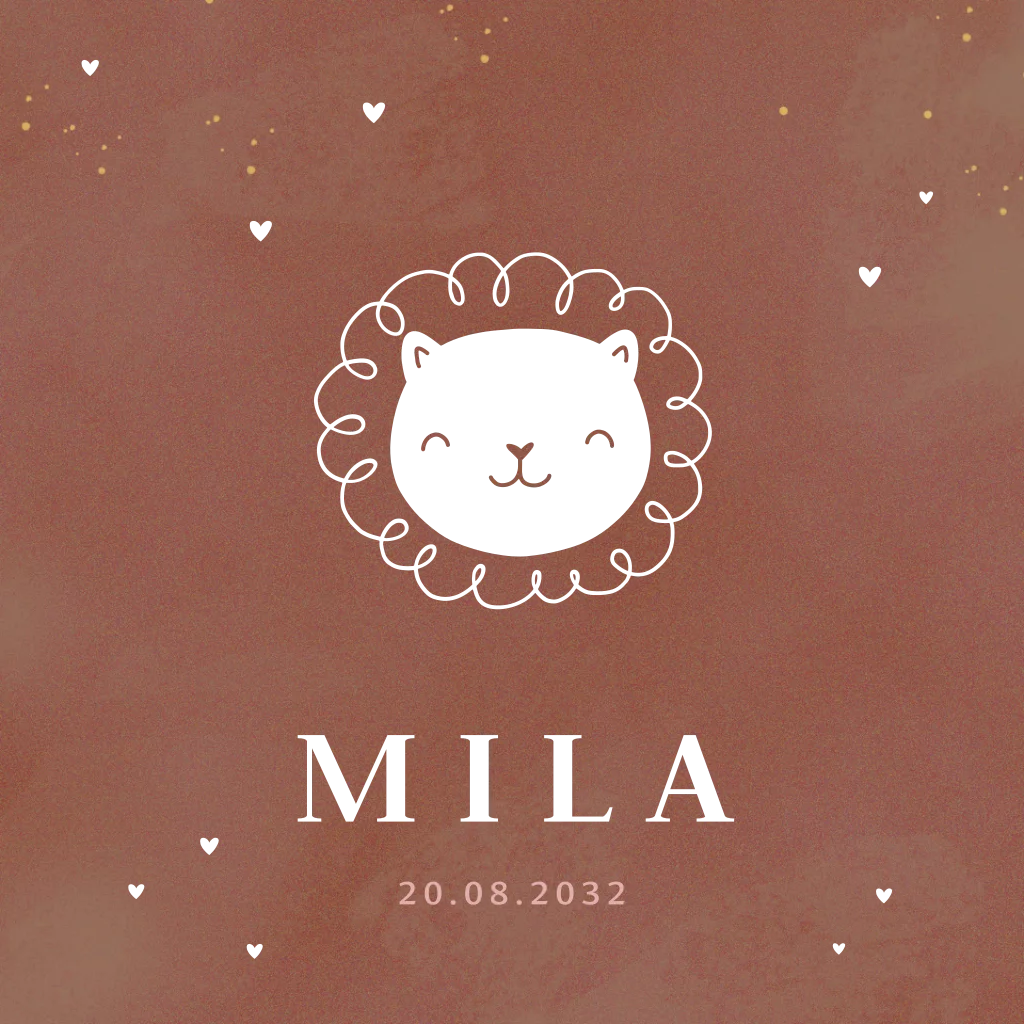 Geboortekaartje leeuwtje trendy kleur warm rosefoliedruk