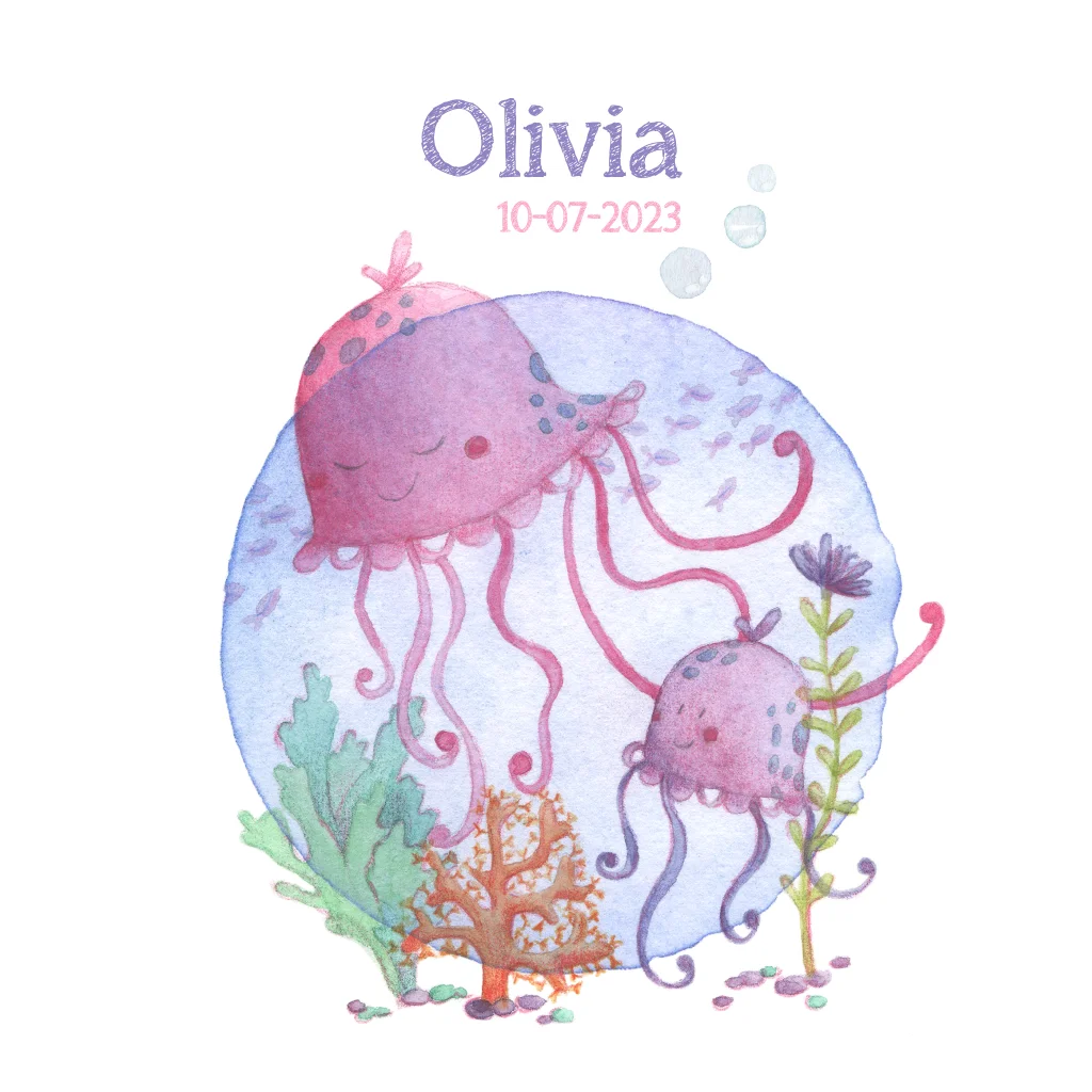 Geboortekaartje met illustratie van een lieve kwal met een baby. (3761)