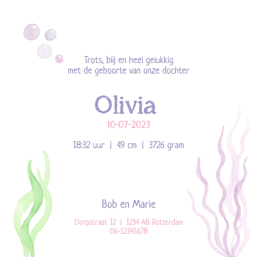 Geboortekaartje lieve kwal met kleintje voor een meisje