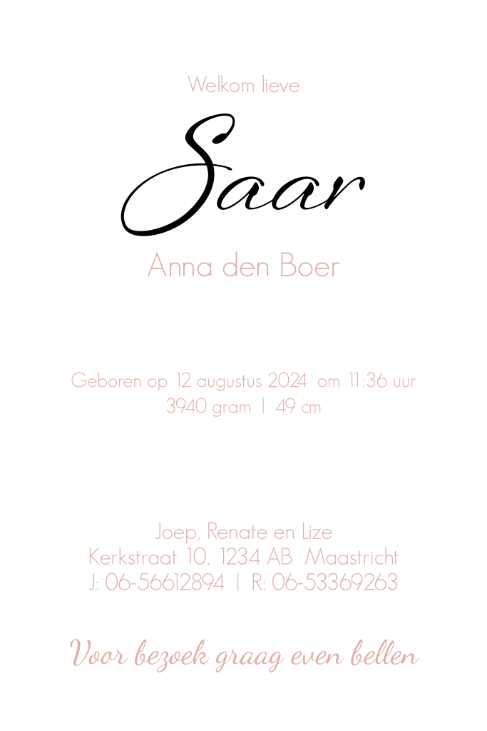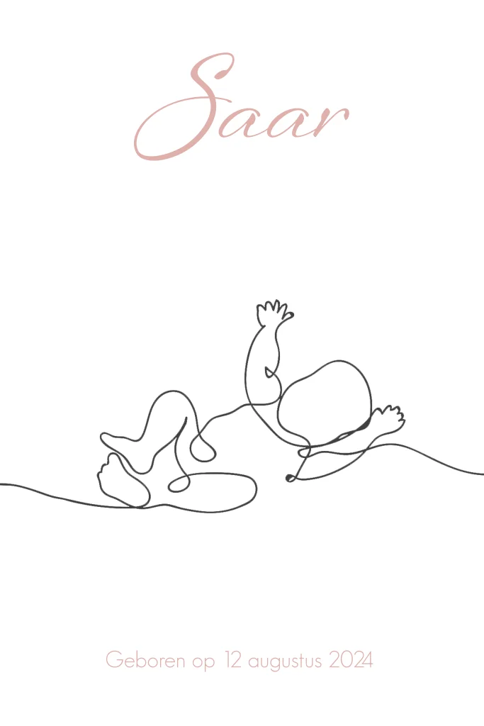 Geboortekaartje lijntekening geboren meisje. Lijntekening met kleur oud-roze. Alle kleuren en lettertypes zijn naar wens aan te passen. (4201)