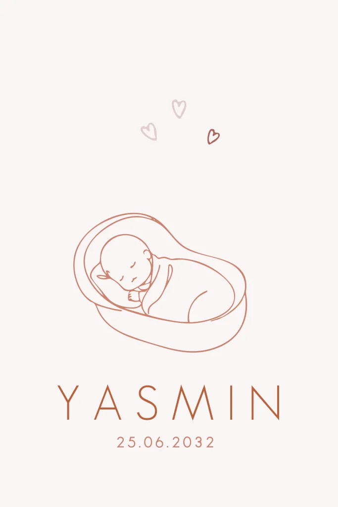 Ontwerp een lief geboortekaartje met roze hartjes. Pas het naar wens aan in onze online editor.