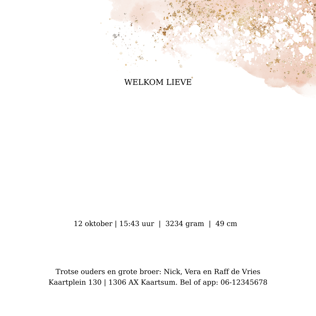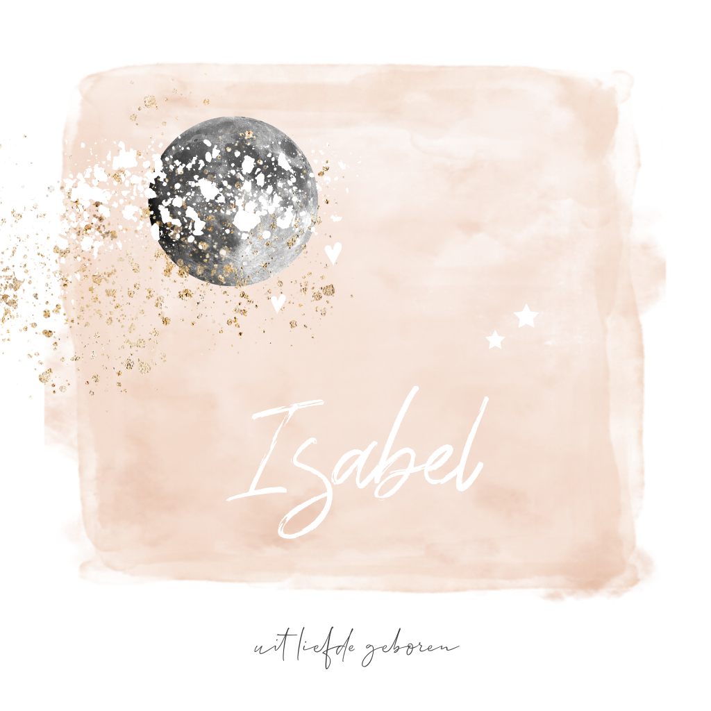 Modern geboortekaartje meisje met maan op een roze watercolor achtergrond. (4654)