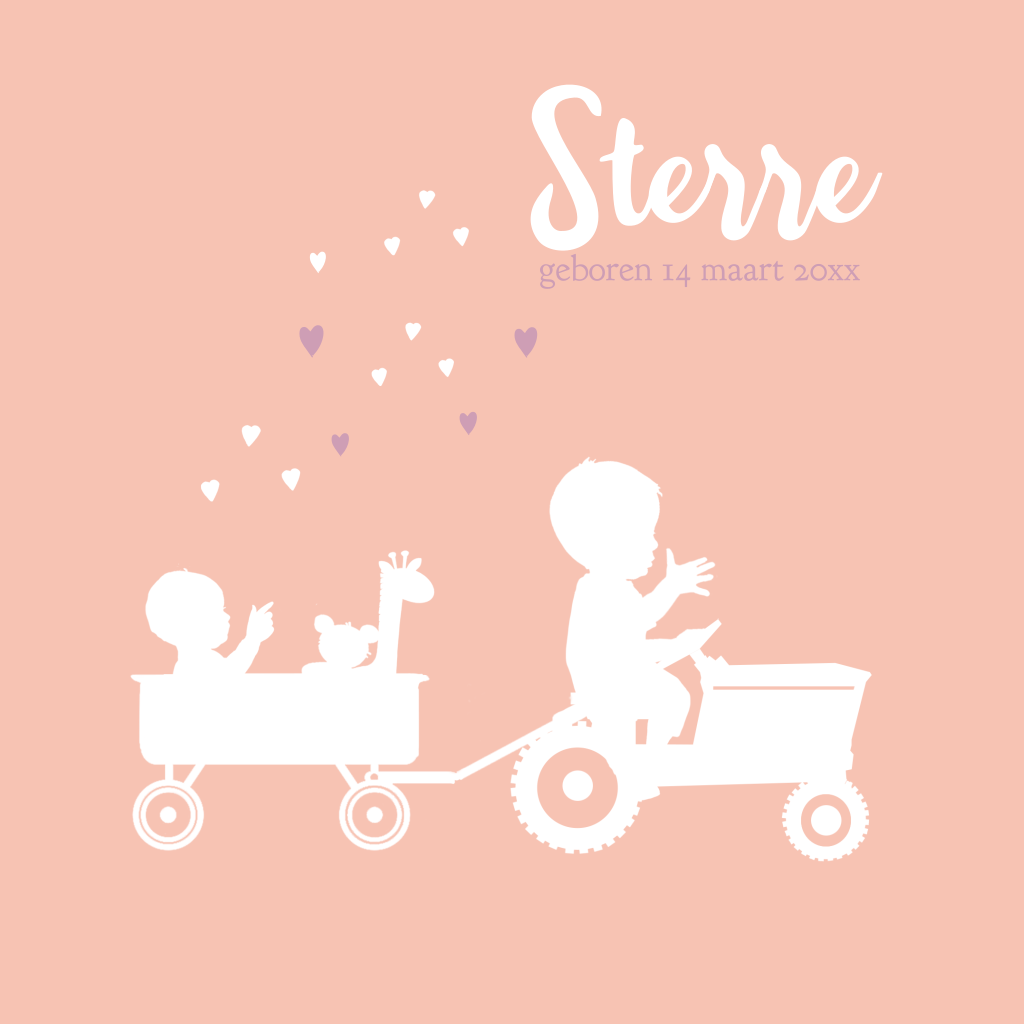 Geboortekaartje meisje 2e kind grote broer op tractor en karretje