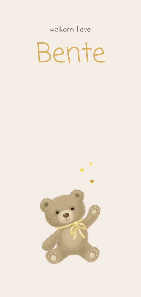 Een lief geboortekaartje voor een meisje met een beertje, strik en hartjes. (4670)