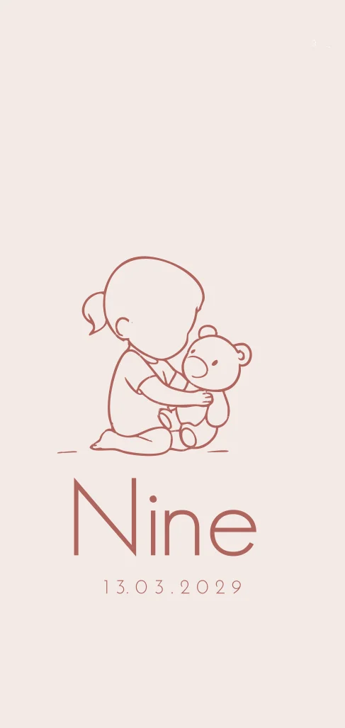Geboortekaartje meisje beer teddybeer lijntekening silhouet
